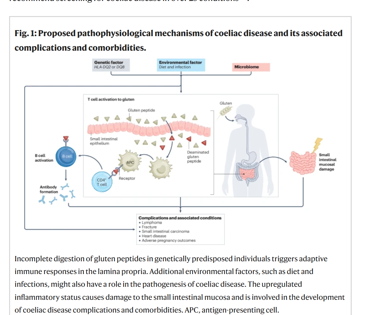 乳糜泻及其相关并发症和共病的拟定病理生理机制